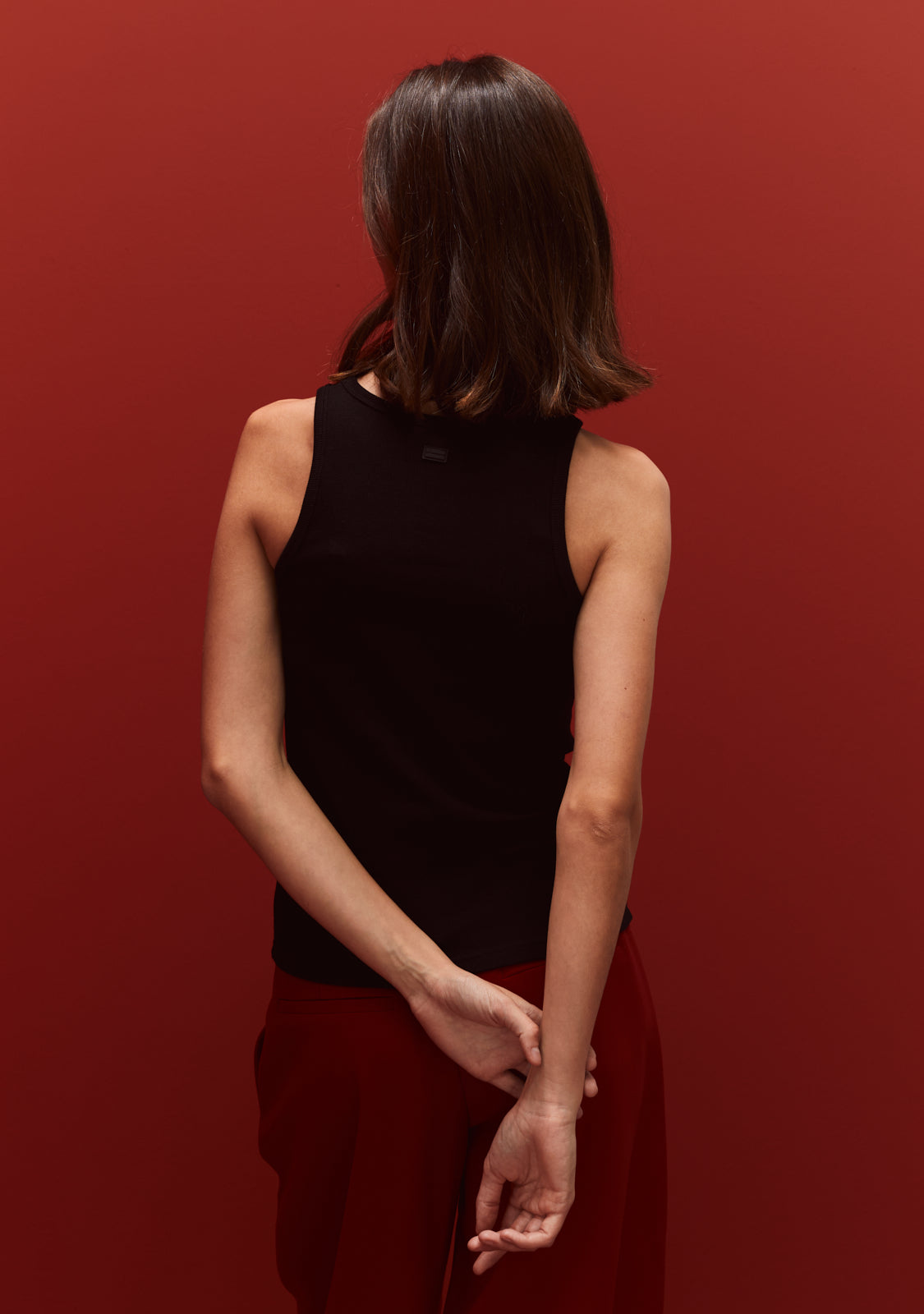 Feito de algodão com um malha canelada, apresenta um justo silhueta que segue sua forma naturalmente. Limpo, confortável e projetado para caber facilmente em sua rotação diária.