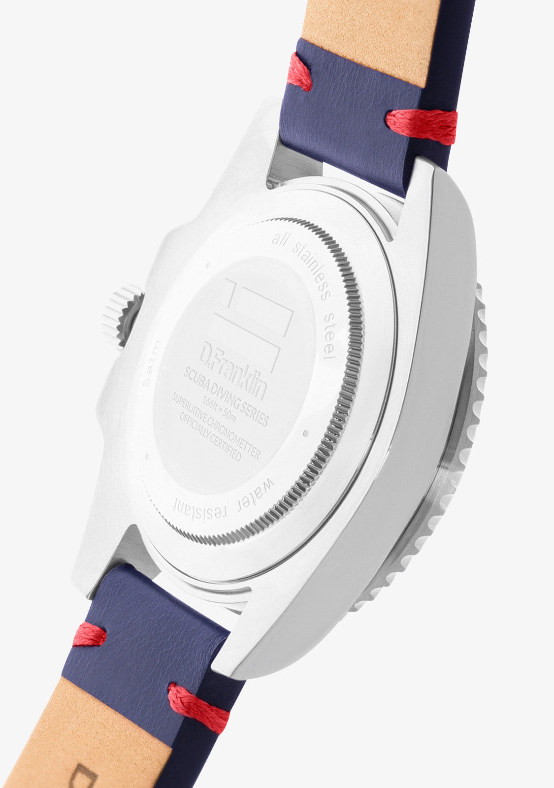 Os modelos Scuba Diving fazem parte da nova coleção de relógios masculinos D.Franklin®. Uma edição limitada para eles, com um mecanismo de 3 ponteiros, uma pulseira de couro sintético e um mostrador com revestimento de safira. O Scuba Diving Navy Black Red / Black aposta nos detalhes. A sua pulseira em azul-marinho, ao lado do mostrador preto com detalhes vermelhos, unifica um modelo com estilo único.
