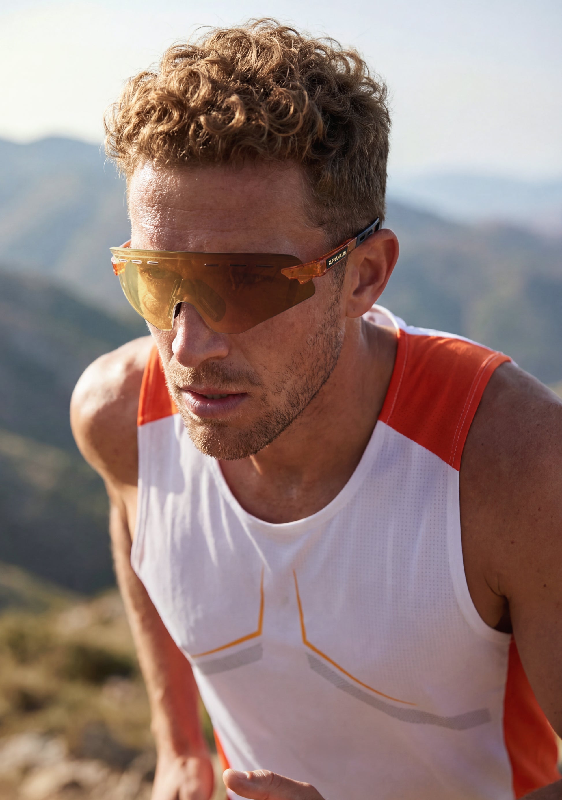 Com uma classificação Categoria 0–2, são ideais para treinar em condições de luz variáveis, desde o ciclismo de estrada até ao trail running. A armação sem moldura em TR90 ultraleve com curvatura 6C assegura um ajuste envolvente e excelente proteção lateral. As almofadas nasais e as pontas das hastes em borracha oferecem uma aderência segura, mesmo com suor ou chuva.