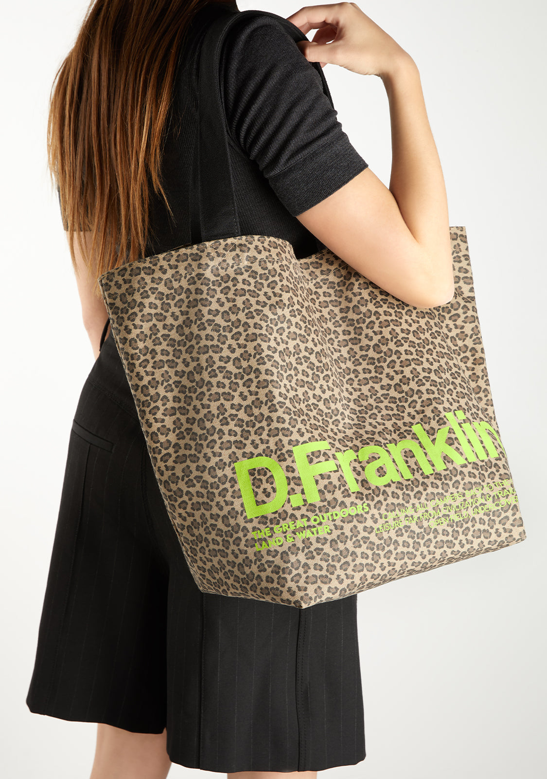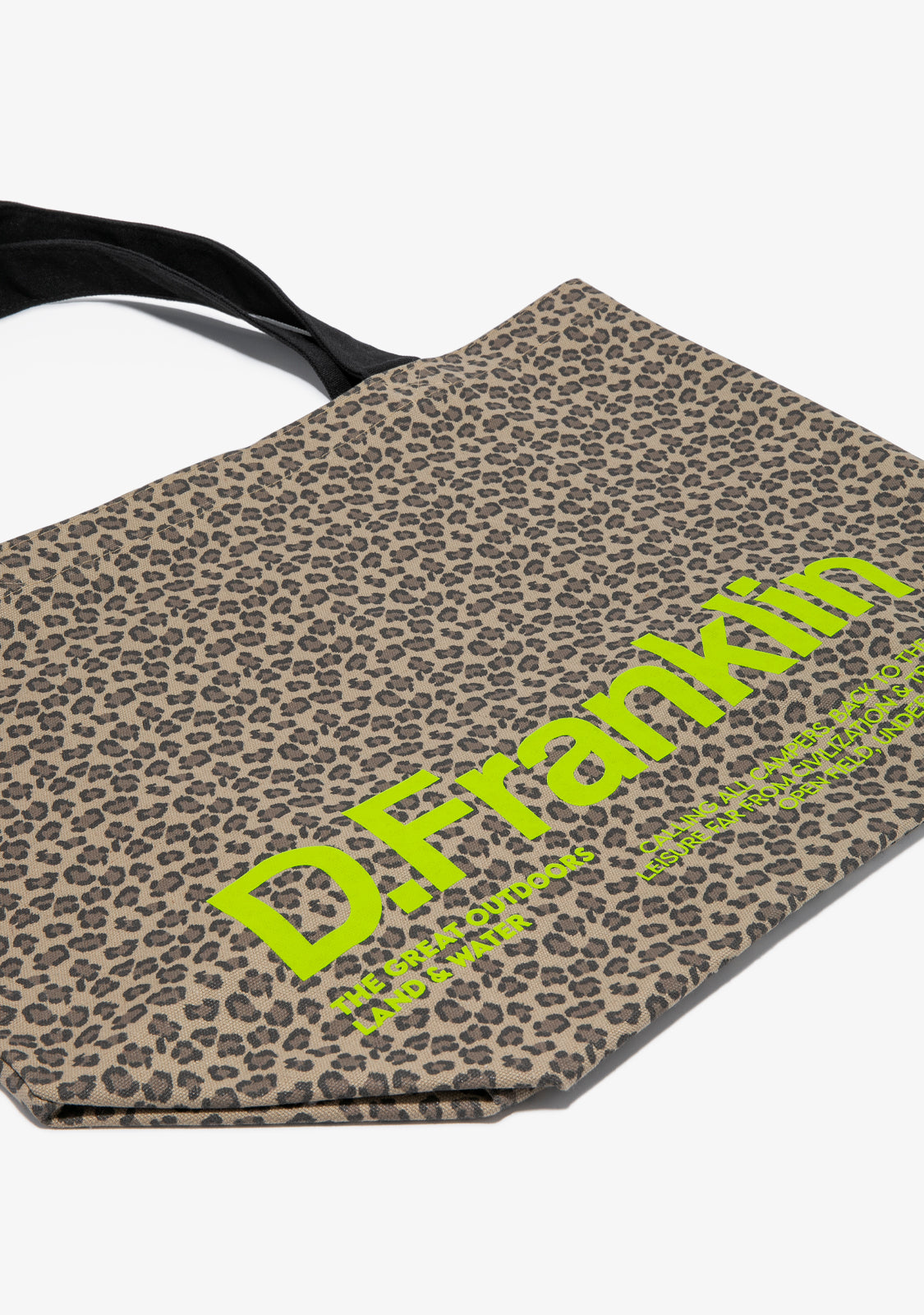Desenhada em padrão de leopardo, com o logótipo D.Franklin em verde limão.