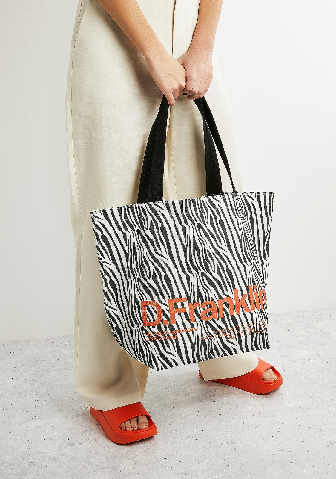 Desenhada em padrão zebra, apresentando o logótipo D.Franklin em laranja.
