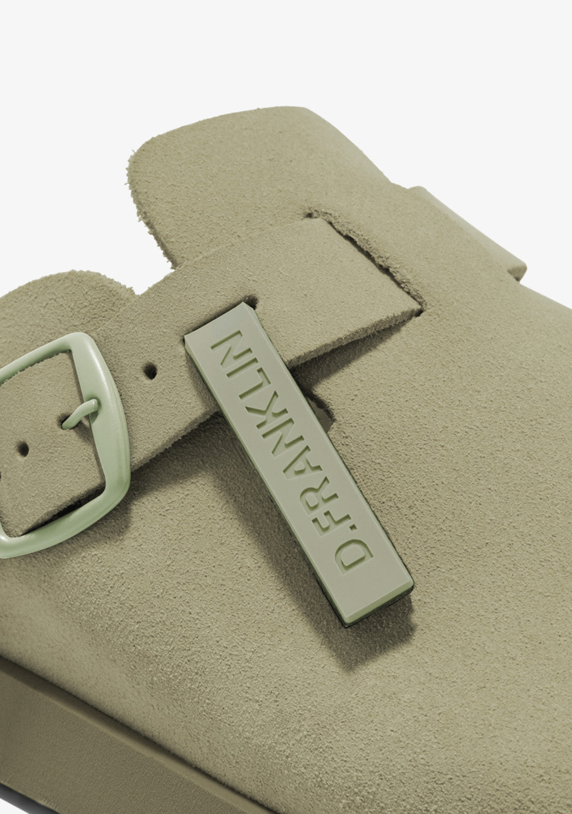 O Vibe Clog Buckle Khaki da D.Franklin combina design moderno e funcionalidade, tornando-se o tamanco fechado perfeito para qualquer ocasião. O seu cabedal em camurça proporciona um acabamento suave e elegante, enquanto a sola em EVA garante leveza e excelente amortecimento, ideal para longos dias.