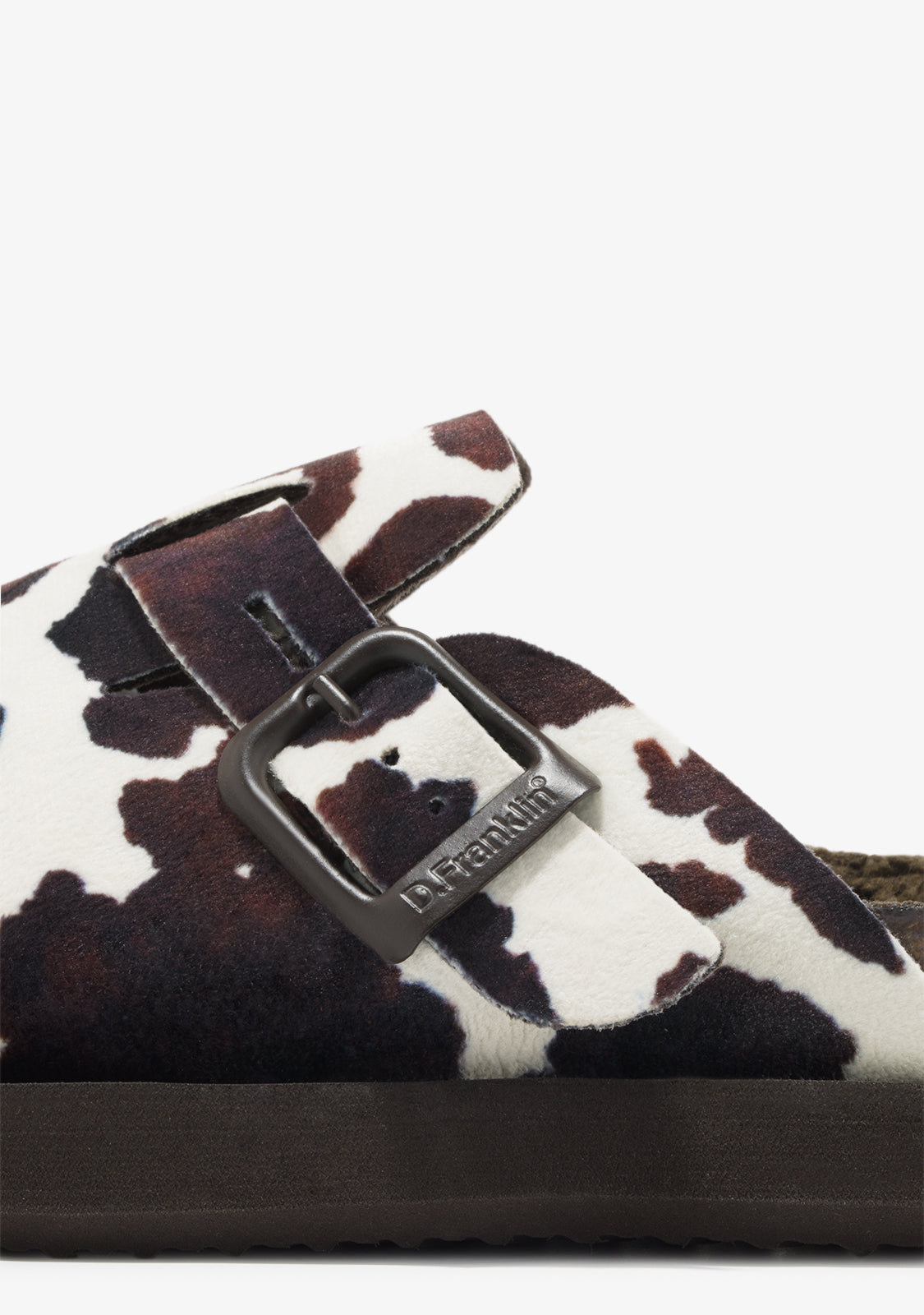 Os Vibe Clog Cow da D.Franklin destacam-se pelo seu design único com padrão de vaca em preto e branco – perfeitos para quem procura um calçado com personalidade e originalidade. Feitos em Espanha, destacam-se pela sua qualidade e conforto.
