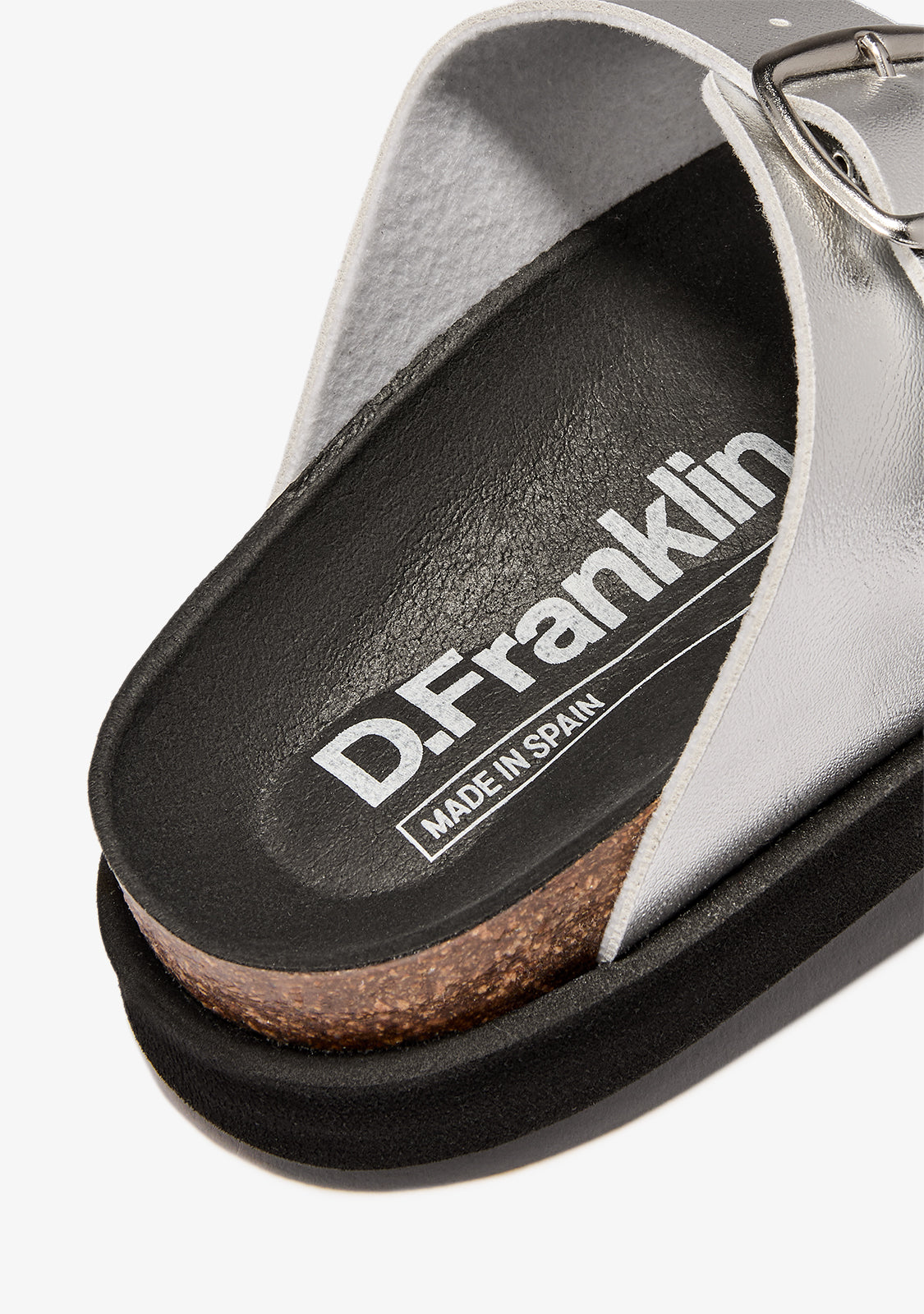 Descubra a mistura perfeita de estilo e conforto com as sandálias Vibe Sandals Buckle Met Silver da D.Franklin. Feitas em couro, oferecem um acabamento premium que complementa qualquer look.