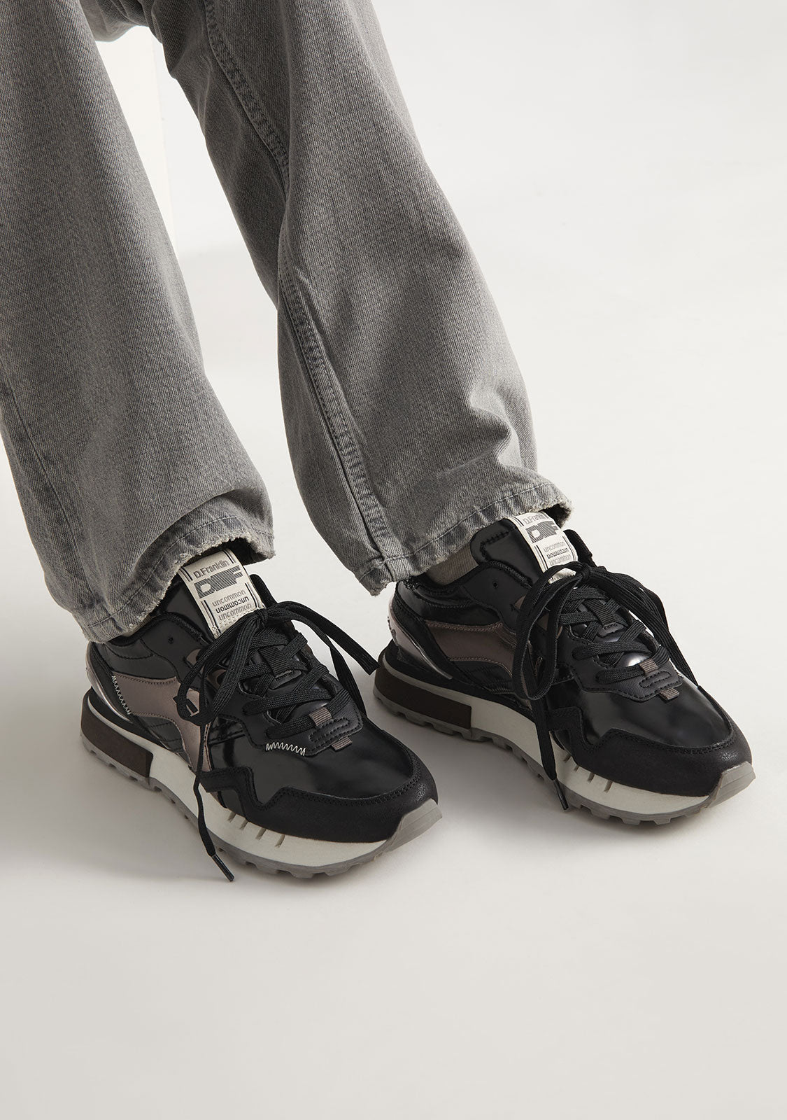 Estes ténis são feitos com detalhes em preto brilhante. Apresentam uma sola TR com detalhes perfurados e um acabamento em pirâmide para maior conforto e tração. Também possuem uma peça de biqueira mista para maior flexibilidade. O nosso emblema pode ser encontrado na frente e na lateral, bem como na parte de trás.