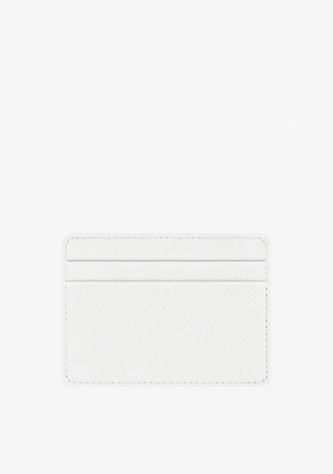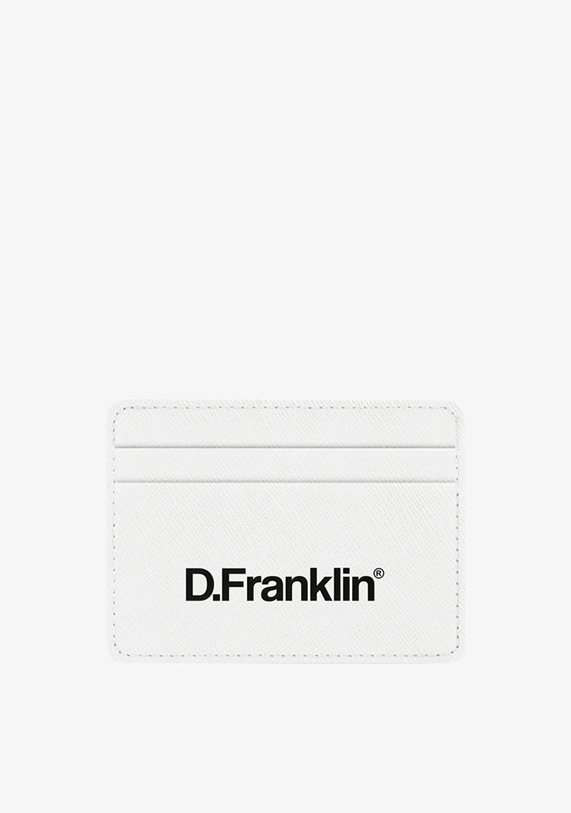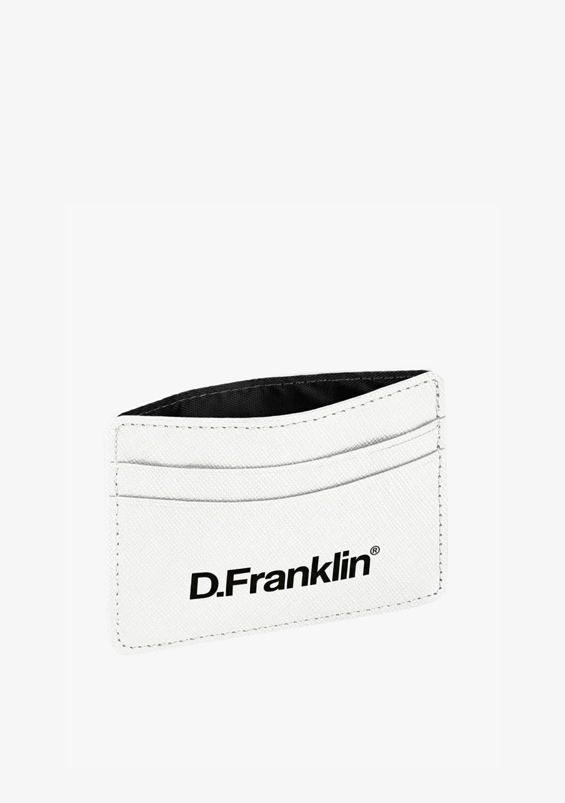 Carteira de cartão em couro ecológico na cor branca com o logótipo D.Franklin.